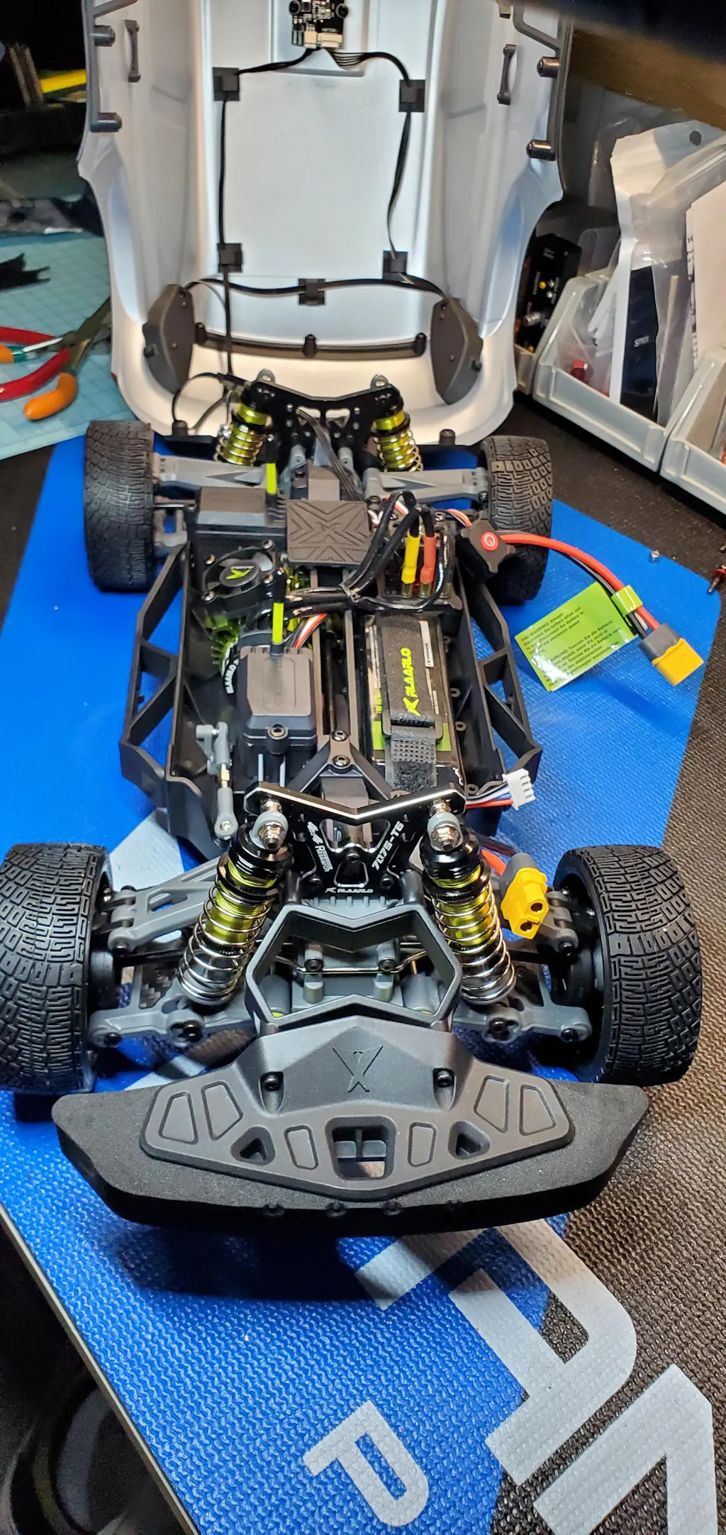STURDY ALUMINUM ALLOY MATERIAL:XTS-F10 Rally Car's chassis and shock tower are made from high-strength aluminum alloy, offering excellent resistance to deformation and durability. This aluminum chassis effectively handles various terrain challenges, ensuring stability and performance.
